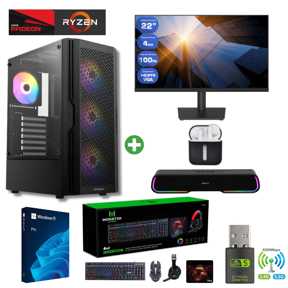 PC GAMER ARMADO + MONITOR 22″ + PARLANTE + AUDIFONOS: